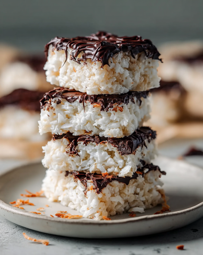 A delightful treat combining chewy coconut, creamy sweetness, and a hint of vanilla, perfect for any occasion.