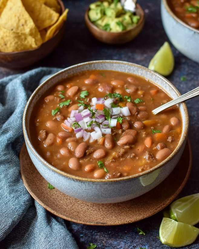 Imagine a pot simmering on the stove, filling your kitchen with mouthwatering aromas. The combination of tender pinto beans, savory beef, and vibrant vegetables creates a symphony of flavors. Each spoonful is hearty and satisfying, making it a favorite for families and friends alike.