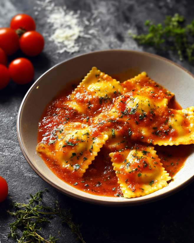 • Cheese Ravioli: The creamy filling of cheese ravioli pairs beautifully with the rich tomato sauce. The sauce enhances the flavors without overpowering the delicate cheese.
