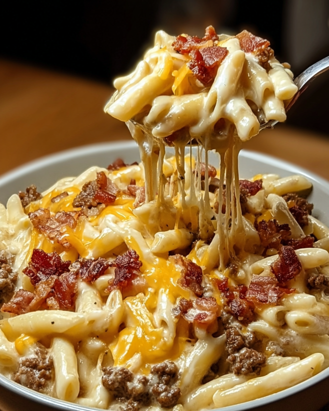 Step-by-Step Preparation of Loaded Bacon Cheeseburger Alfredo Pasta Recipe