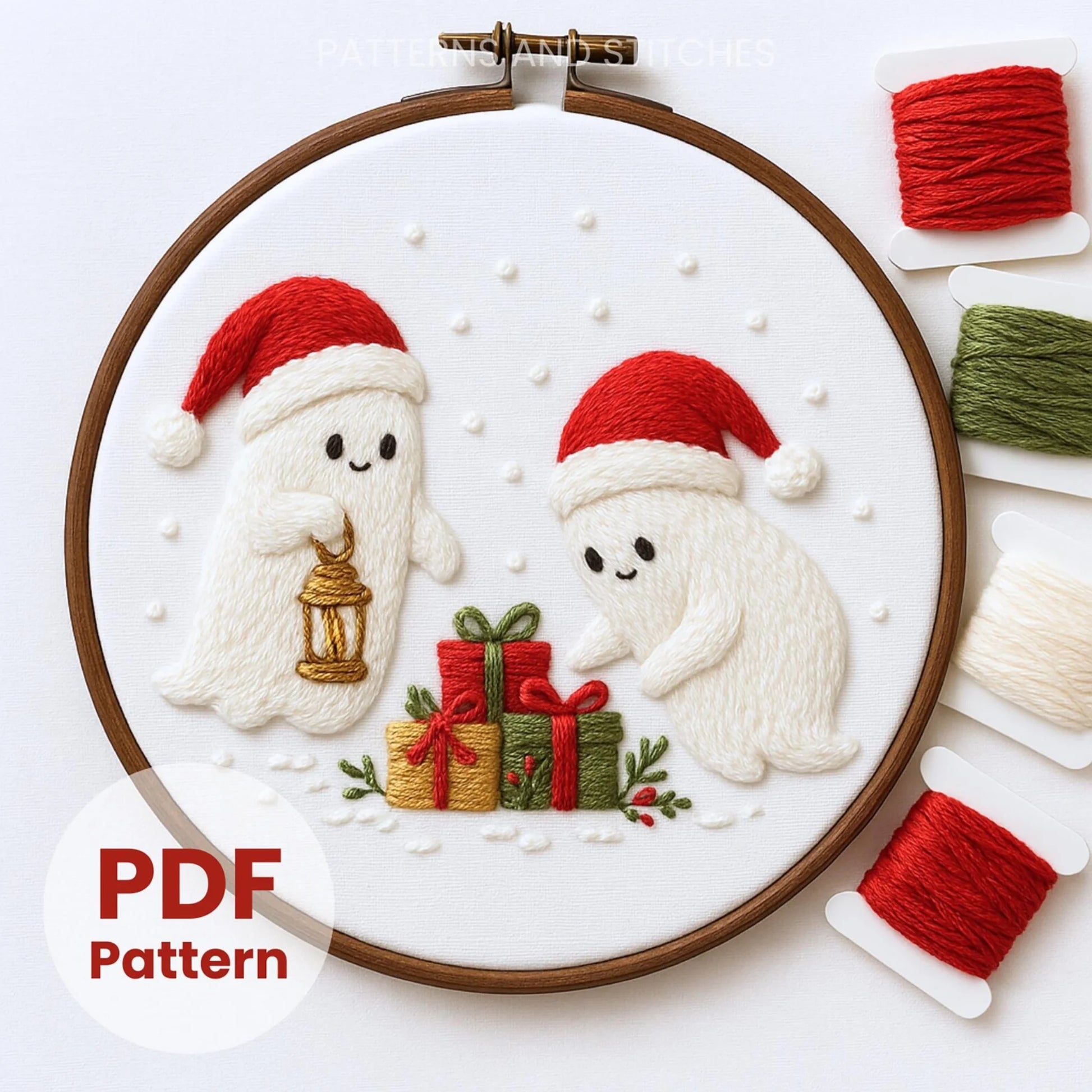 Cozy ghost Hand Embroidery PDF Pattern Holiday Stitch Design Festive Winter Decoration Digital Embroidery Pattern Cozy Handmade