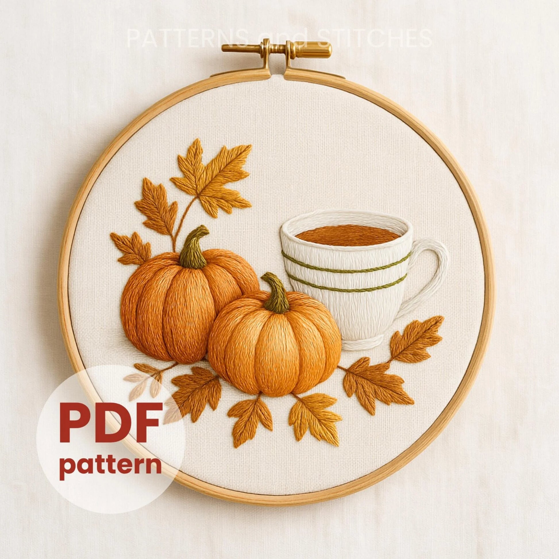 Pumpkin Tea Hand Embroidery Pattern: Cozy Fall Craft (PDF Pattern)