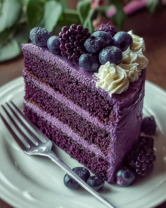 In conclusion, the Royal Purple Velvet Cake with Vanilla Frosting is a delightful dessert that combines beauty and flavor in every bite. Its vibrant color and soft, moist texture make it a standout choice for any celebration. Whether you’re baking for a birthday, wedding, or just a special treat for yourself, this cake is sure to impress.