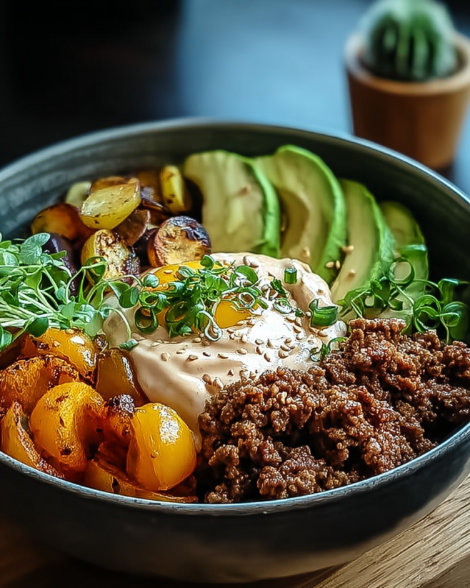- Experiment with Spices: Don’t be afraid to try different spices! Adding cumin, chili powder, or even a dash of cayenne can give your savory burger bowl a unique twist.
