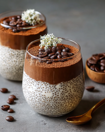 A delightful twist on the classic Italian dessert, combining creamy chia pudding with rich coffee and cocoa flavors.